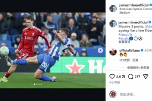 布萊頓中場米爾納賽后在社交媒體上寫道:“非常重要的三分,維爾貝克就像一瓶陳年佳釀(Ribena黑加侖果汁),越老越香。”