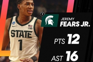 體育資訊3月22日訊 今日NCAA瘋三32強賽,密歇根州立大學77-69拿下路易斯維爾。