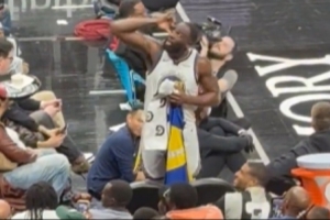 比賽中幾名老鷹隊球迷不停地高喊著:“追夢真爛!追夢真爛!”作為回應,追夢徑直走向替補席,瞇起雙眼——似乎是在尋找那些根本就不在那里的亞特蘭大老鷹隊總冠軍旗幟。