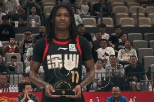 “小孩哥”史密斯領取CBA第二期中國人壽月度最佳國際球員獎杯,恭喜小孩哥!