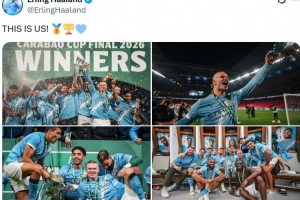 哈蘭德也在社媒曬出與眾位隊友開心慶祝合影,配文寫道:“這就是我們!”