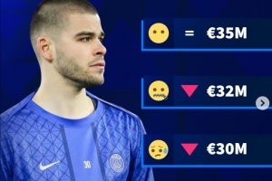 體育資訊3月25日訊 德國轉會市場曬照,預熱巴黎門將舍瓦利耶的身價,四種方案的三種都是身價下調。