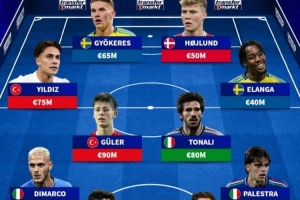 中場:伊爾迪茲(土耳其,7500萬)、居萊爾(土耳其,9000萬)、托納利(意大利,8000萬)、伊蘭加(瑞典,4000萬)
