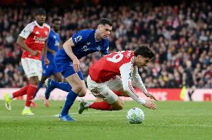 在3月14日槍手主場2-0戰(zhàn)勝埃弗頓的第24分鐘,哈弗茨在邁克爾·基恩的接觸下倒地。主裁判安迪·馬德利允許比賽繼續(xù)進(jìn)行,而VAR裁判斯圖亞特·阿特維爾認(rèn)為接觸“極其輕微”。但回放顯示,埃弗頓后衛(wèi)無意中踩到了哈弗茨的腳。
