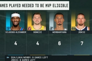 備注:亞歷山大、東契奇、文班亞馬所在球隊常規(guī)賽還剩9場,約基奇還剩8場