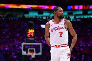 此役,杜蘭特出戰33分鐘,投籃16中12,三分球5中4,罰球2中1,砍下29分7籃板2助攻2搶斷2蓋帽的數據。