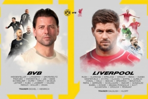 利物浦VS多特傳奇賽大名單:杰拉德、庫巴領銜,李榮杓、拉什在列