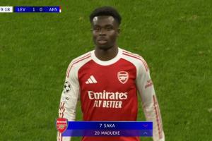 體育資訊03月12日訊 歐冠1/8決賽首回合,阿森納客戰勒沃庫森,薩卡表現不佳,第60分鐘便被換下,獲評6.3分。