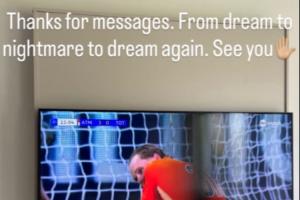 今日金斯基在風波后首次更新社媒,他的配圖正是電視上自己失誤懊悔的瞬間。此外他寫道:“謝謝大家的信息。從夢想,到噩夢,再到夢想。大家再會。?”