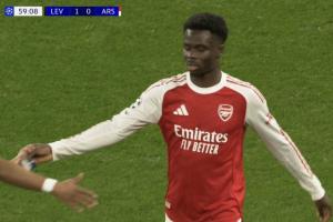 體育資訊03月12日訊 歐冠1/8決賽首回合,阿森納客戰勒沃庫森,第60分鐘,薩卡被換下場,馬杜埃凱替補登場。