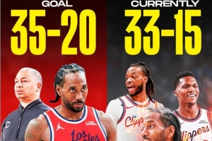 如今,他們正穩步前進,每晚都在努力爭取勝利。在這一階段,快船已經取得了33勝15負的戰績,距離目標僅一步之遙。