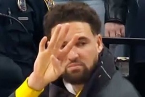 曾效力于德克薩斯大學的杜蘭特在INS上曬出了克萊“四根手指”表情包,慶祝母校晉級四強。