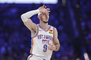 體育資訊3月31日訊 雷霆加時114-110險勝殘陣活塞。賽后,雷霆球員卡魯索接受媒體采訪。