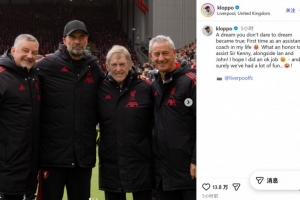 在社交媒體上,克洛普曬出了自己和達格利什、伊恩·拉什以及約翰·阿爾德里奇等3名利物浦傳奇的合影,他寫道:一個從不敢奢望的夢想成真了,這是我人生中第一次擔任助教。能夠與伊恩·拉什和約翰·阿爾德里奇一起協助達格利什爵士,我感到非常榮幸!我希望我的表現還算不錯。當然,我們在一起度過了很多歡樂時光。