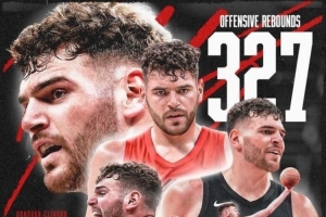 賽季至今,他搶到327個進攻籃板,創隊史單賽季進攻籃板新紀錄。