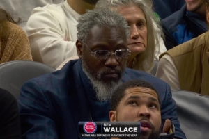 比賽期間,鏡頭捕捉到活塞名宿“大本鐘”本·華萊士來(lái)到現(xiàn)場(chǎng)。雖然須發(fā)皆白,但威嚴(yán)強(qiáng)硬的氣勢(shì)仍在。