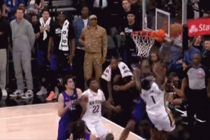 GIF-錫安關鍵一攻突破上籃遭遇考德威爾釘板大帽