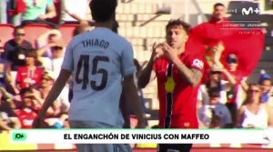 體育資訊04月05日訊 本輪西甲,馬略卡2-1絕殺皇馬。《馬卡報》援引了轉(zhuǎn)播方Movistar+對比賽的直擊畫面,發(fā)現(xiàn)了一個細節(jié):替補登場的維尼修斯與馬略卡邊后衛(wèi)馬菲奧之間依舊是火藥味滿滿。