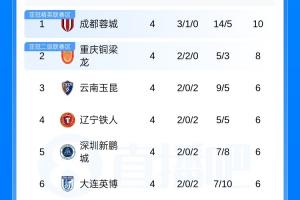體育資訊04月05日訊 中超第4輪結束,目前積分榜上,三支西南地區球隊蓉城、銅梁龍和玉昆繼續領跑,泰山跌至第11,5隊仍負分,申花逆轉取勝逃離降級區,津門虎一勝難求負9分仍墊底。