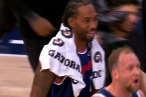 比賽結束后,兩隊爆發沖突,正在與對手擁抱致意的倫納德對著旁邊的裁判喊了句:they fighting (看,他們在打架),隨后微微一笑。