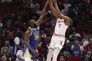 體育資訊4月6日訊 勇士主場迎戰(zhàn)火箭,上半場53-55落后2分。