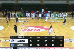 末節(jié)決戰(zhàn),李依坤上來帶領中國海大咬住比分,隨后中國海大連續(xù)失誤,陳雨欣繼續(xù)內線取分,夏榮三分再中,天津財大9-0再次領先到雙位數(shù)領先,張榮荷雖然三罰全中再追分,但時間所剩無幾,最終天津財大71-61力克中國海大。