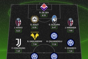 中場:孔塞桑(尤文圖斯,7.49分)、加利亞爾迪尼(維羅納,7.98分)、恰爾汗奧盧(國際米蘭,9.18分)、迪馬爾科(國際米蘭,7.34分)
