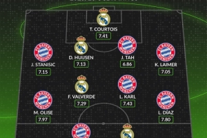 whoscored列皇馬拜仁歐冠評分合體陣:拜仁三叉戟+姆巴佩領銜