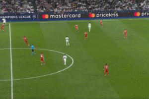 阿諾德后場長傳發動攻勢,巴爾韋德插上,諾伊爾出擊趕在阿方索之前,將皮球截獲。