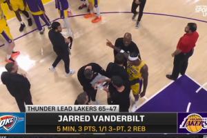 體育資訊04月08日訊 NBA常規賽,湖人87-123慘負雷霆,范德彪賽中與主帥雷迪克發生口角,隨后直接被DNP。
