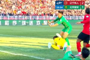 中超聯(lián)賽第4輪,遼寧鐵人楠波灣VS北京國(guó)安。比賽第58分鐘,北京國(guó)安進(jìn)球。裁判員在球進(jìn)入球門前鳴哨停止比賽,并判北京國(guó)安37號(hào)隊(duì)員在之前的爭(zhēng)搶時(shí)對(duì)對(duì)方守門員犯規(guī),進(jìn)球無效,由遼寧鐵人踢直接任意球恢復(fù)比賽。VAR未介入。