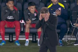 比賽中,小西蒙尼在一次進攻中傳中直接傳出底線,鏡頭馬上給到他的父親——站在場邊的西蒙尼,西蒙尼看到這一幕后有些尷尬的搓了搓頭。