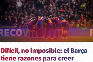 體育資訊4月9日訊 歐冠1/4決賽首回合比賽,巴薩主場0-2不敵馬競。巴薩官網(wǎng)發(fā)表了一篇文章,認(rèn)為球隊(duì)想要逆轉(zhuǎn)并非不可能,紅藍(lán)軍團(tuán)仍有理由相信晉級歐冠半決賽。