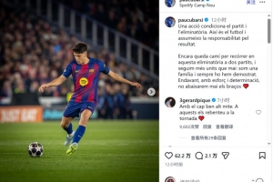 庫巴西賽后社媒表示,自己為這場失利承擔責任,巴薩傳奇后衛皮克留言鼓勵:“昂首挺胸,我的傳奇,次回合你們就把他們打爆。”