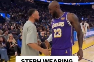 賽后,詹姆斯接受了記者采訪。談到庫里今天穿自己的球鞋,他說道:“我的意思是,他是有史以來最偉大的球員之一。他穿了我的球鞋,這真是太酷了。我今天看到了照片,他去克利夫蘭穿著我的第一款簽名球鞋,然后今天又穿上了10代。這真的非常特別。我認為那款配色其實是為他設計的。我相信,當時他在耐克時我們為他制作了這款鞋。不過,勇士的配色在他腳上看起來確實不錯。這很特別。”