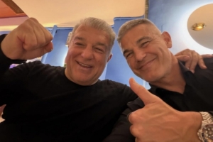 世體:拉波爾塔和助手慶祝皇馬本輪不勝,助手在社媒曬出兩人合影