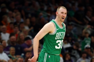 凱爾特人球員豪澤本場比賽在外線手感依舊火熱,他僅出戰三節時間就射落8記三分。