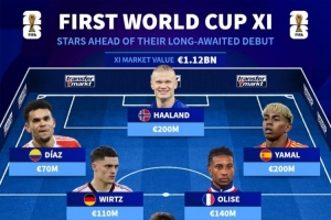 體育資訊4月11日訊 德國轉(zhuǎn)會市場列出了預(yù)計將首次參加世界杯的球員陣容,亞馬爾、哈蘭德、維爾茨、奧利塞在列。
