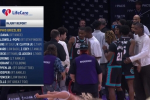 本場比賽,灰熊14名球員登上傷病名單,缺陣球員累計薪資高達1.56億!出戰(zhàn)6人薪資分別為: