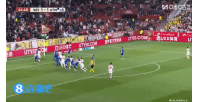 上半場補時階段,塞維利亞角球機會,古德利俯身沖頂破門!