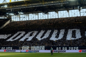 在對陣勒沃庫森的比賽之前,多特南看臺球迷展示TIFO,致敬已故的多特俱樂部工作人員達烏德·穆罕默德。