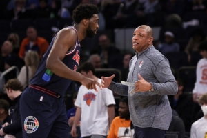談到昔日弟子恩比德因為闌尾炎接受手術一事,里弗斯表示:“搞什么鬼?闌尾炎?這種事簡直是編都編不出來的。真的,你根本編不出來。當我還在執教這里時,我們為確保他的健康已竭盡全力。而且我知道現主帥納斯也采取了同樣的措施,因為我們之間經常交流。”