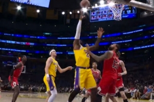 GIF-詹姆斯搶下進攻籃板 成功打成2+1