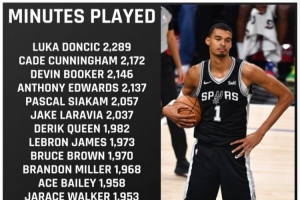 美記Nate Duncan列出了本賽季出場時間比文班亞馬多,但因65場規(guī)則沒有評獎資格的球員,按出場時間依次是東契奇、坎寧安、布克、愛德華茲、西亞卡姆、拉拉維亞、奎因、詹姆斯、布魯斯·布朗、布蘭登·米勒、貝利、賈雷斯·沃克、艾頓、雷諾、布萊克、席爾瓦、迪亞巴特、八村塁。