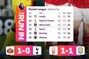 體育資訊04月13日訊 英超第32輪,熱刺客場0-1不敵桑德蘭,未能脫離降級(jí)區(qū)。數(shù)據(jù)機(jī)構(gòu)最新數(shù)據(jù)顯示,熱刺的降級(jí)概率進(jìn)一步增加,已經(jīng)是降級(jí)大熱門。