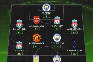 后衛(wèi):阿諾德(利物浦,67球)、加布里埃爾(阿森納,25球)、范戴克(利物浦,26球)、羅伯遜(利物浦,49球)