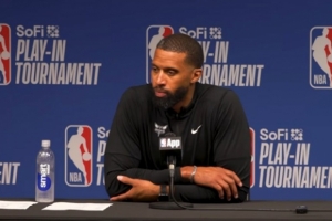 記者問:“查爾斯,這是你作為主教練的第一場季后賽級別的比賽,也是你的教練組第一次共同面對這種級別的比賽。在這樣一場比分膠著的比賽的最后階段,你要做出一些艱難的決定,你的感覺如何?這對你來說是什么樣的體驗?”