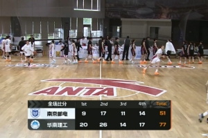 末節(jié)大比分領(lǐng)先之后華南理工主做防守,雖然沒能像前三節(jié)那樣壓制對(duì)手但場(chǎng)面部落下風(fēng),優(yōu)勢(shì)一直維持在20分以上不給對(duì)手任何機(jī)會(huì)。最終,華南理工77-51大勝南京郵電大學(xué)拿下比賽。