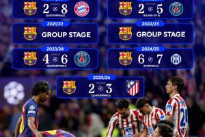2025-26賽季,巴薩總比分2-3不敵馬競,無緣歐冠4強。