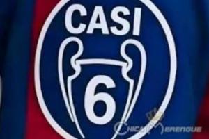 龍賽羅社媒曬圖,一件紅藍球衣的歐冠臂章上標注數字“6”,但是上方寫著西語單詞“CASI(差點)”。